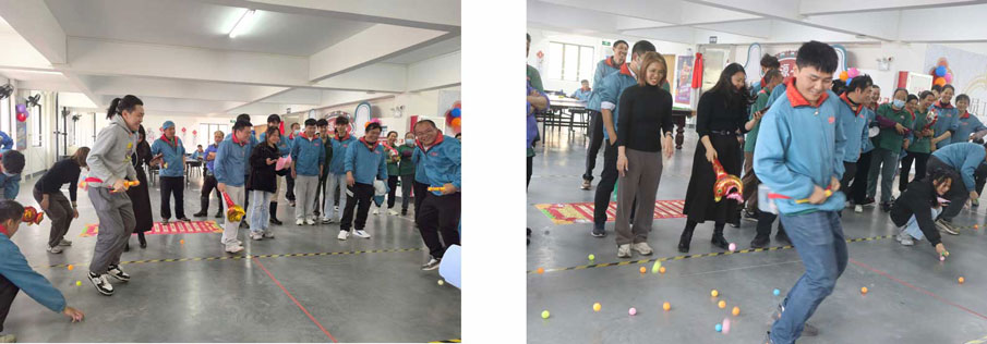 第三個游戲是《財運滾滾樂》:這是一項沒有任何挑戰難度的小游戲,獲得眾多同事的青睞,一眨眼功夫就排了一條長龍等玩游戲,大家都想試試運氣如何,有一名同事恰巧投到“吹爆氣球一個”,小伙子馬上展示如何吹爆氣球,贏得現場同事們的陣陣掌聲和喝彩聲,這小伙子,勇氣可嘉啊!